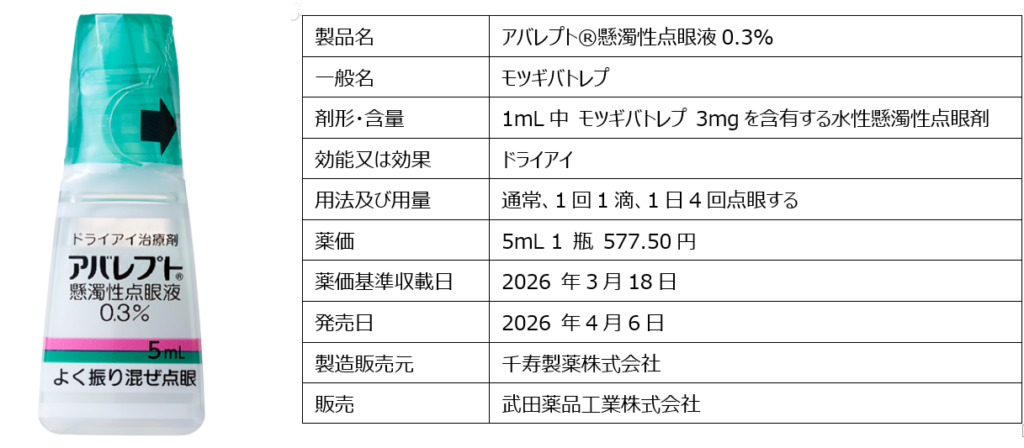 「アバレプト懸濁性点眼液0.3%」というドライアイの治療薬です。